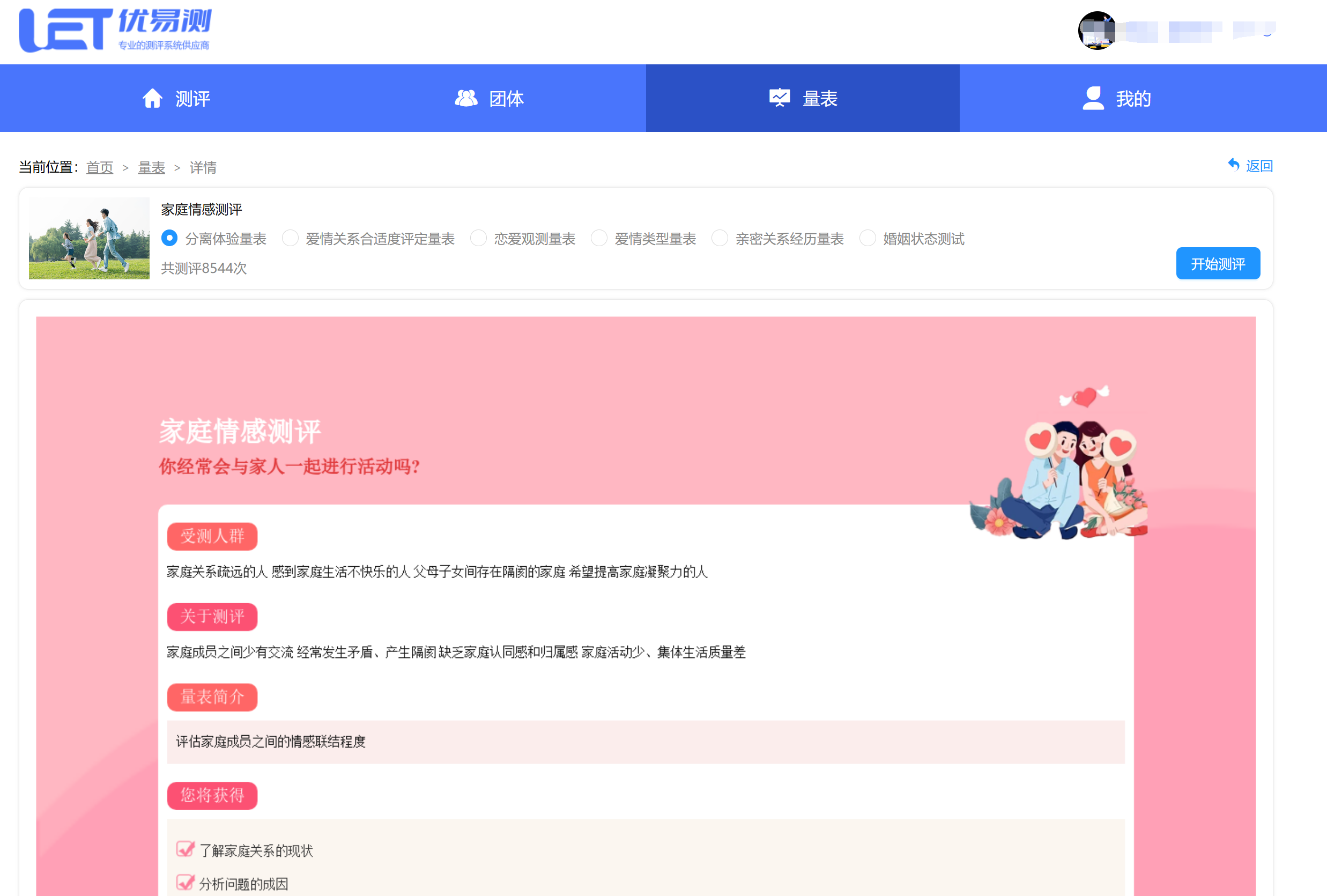 家庭,首先是一个情感的避风港。在这里,我们可以放下防备,展露最真实的自我。成员间的相互理解、支持和鼓励,如同温暖的阳光,穿透心灵的阴霾,给予我们无尽的力量。优易测的测评让我意识到,一个功能良好的家庭,其成员之间的情感交流是开放而真诚的,这种氛围能够滋养我们的心灵,让我们在面对外界压力时更加坚韧不拔。同时,家庭也是角色定位与责任分担的试验田。每个家庭成员都在家庭中扮演着独特的角色,承担着相应的责任。父母的关爱与引导、子女的成长与回馈、伴侣的扶持与陪伴,这些看似简单的日常互动,实则构成了家庭功能的复杂网络。优易测的测评帮助我更加清晰地认识到自己在家庭中的角色和责任,也让我更加珍惜与家人之间的每一次互动和合作。在面对生活的挑战与危机时,家庭功能的强大更是显而易见。无论是突如其来的变故还是长期积累的矛盾,一个功能健全的家庭总能够团结一致,共同面对并克服。优易测的测评让我看到,那些能够在逆境中相互扶持、共同寻找解决方案的家庭,往往能够更快地走出困境,迎来新的希望。这种能力,正是家庭功能中最为宝贵的财富。此外,家庭还是传承与教育的重要场所。在这里,我们学会了如何做人、如何处事、如何面对生活的起起伏伏。优易测的测评让我深刻体会到,一个功能良好的家庭,其成员之间不仅有着深厚的情感纽带,更有着共同的价值追求和文化传承。这种传承不仅是对家族血脉的延续,更是对社会文明的贡献。